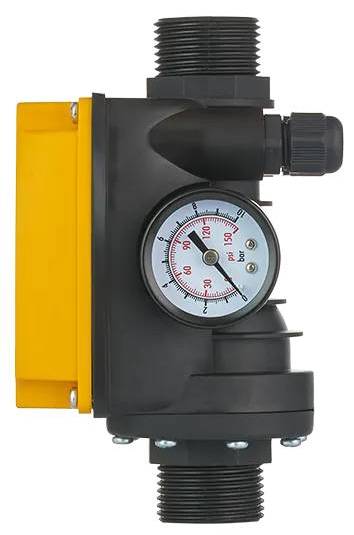 - автоматически выключает насос, если он не может создать давление верхнего порога при отсутствии потока жидкости;