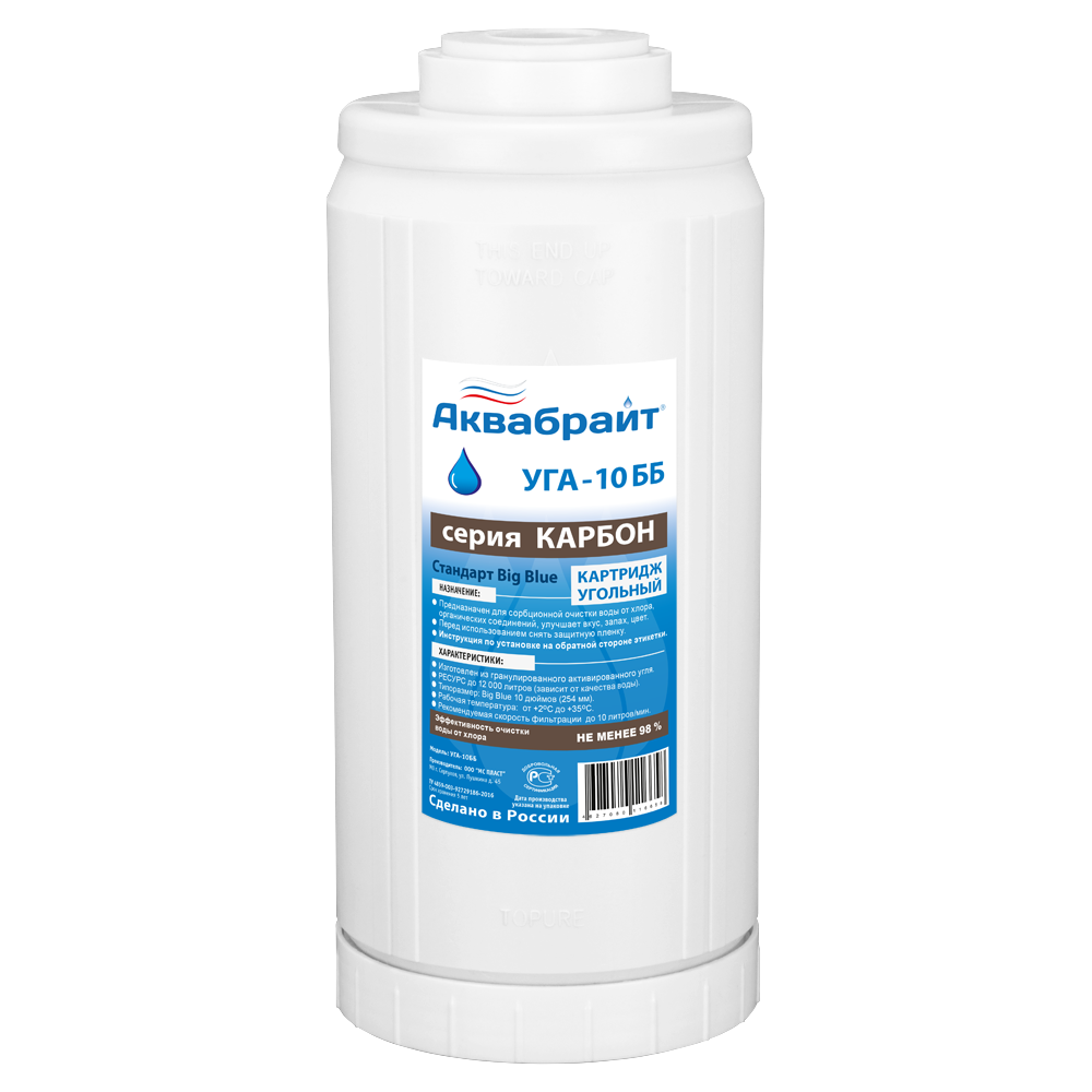 Картриджи УГА изготовлены из гранулированного активированного угля с пищевым допуском. Картриджи предназначены для сорбционной очистки воды от хлора, микроорганизмов и органических соединений. Улучшают органолептические показатели воды (вкус, запах, цвет). Рекомендуется для предварительной очистки воды.