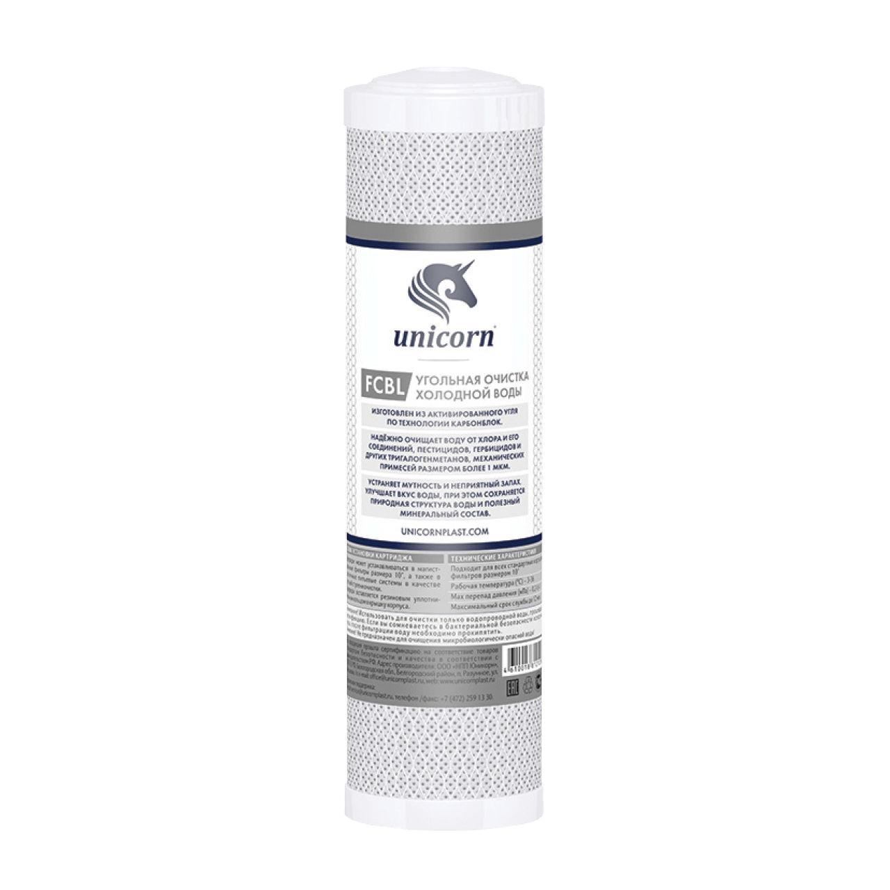 Изготовлен из активированного угля по технологии карбонблок. Надёжно очищает воду от хлора и его соединений, пестицидов, гербицидов и других тригалогенметанов, механических примесей размером более 1 мкм. Устраняет мутность и неприятный запах, улучшает вкус воды, при этом сохраняется природная структура воды и полезный минеральный состав.