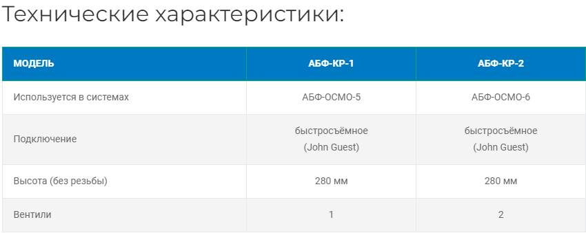 Краны АБФ-КР-1 предназначен для установки в кухонную мойку и используются в многоступенчатых питьевых системах очистки воды АБФ-ТРИА и системах с обратным осмосом АБФ-ОСМО-5.