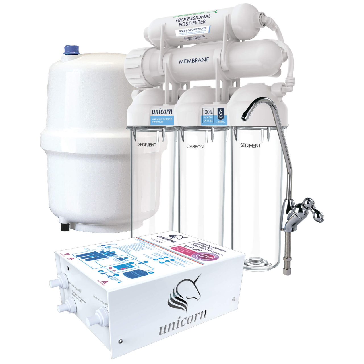 Система очистки для получения воды наивысшего качества. Несколько ступеней очистки, включая обратноосмотическую мембрану, позволяют удалить до 99% всех видов загрязнений, включая бактерии и вирусы. Очищенная вода накапливается в отдельном баке и подается через кран, отдельно устанавливаемый на кухонной мойке.