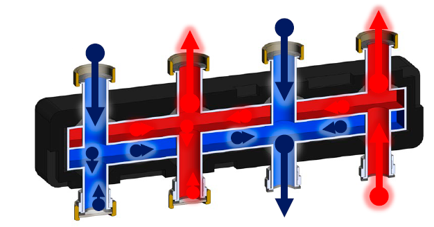 Коллектор отвечает за разделение теплоносителя, поступающего из котла отопления, между контурами с разными гидравлическими характеристиками. За счет конструкции смешивание теплоносителя между контуром подачи и контуром обратного потока не происходит.