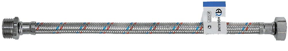Внутренняя трубка гибкого шланга изготовлена из EPDM, покрытого оплеткой из восьми стальных нитей (нержавеющая сталь).