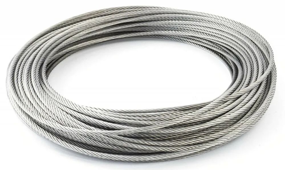 Трос изготовлен из нержавеющей стали, мало подвержен износу и влиянию сырости, агрессивных сред. Нержавеющий трос не пострадает от коррозии даже при длительном использовании в воде.