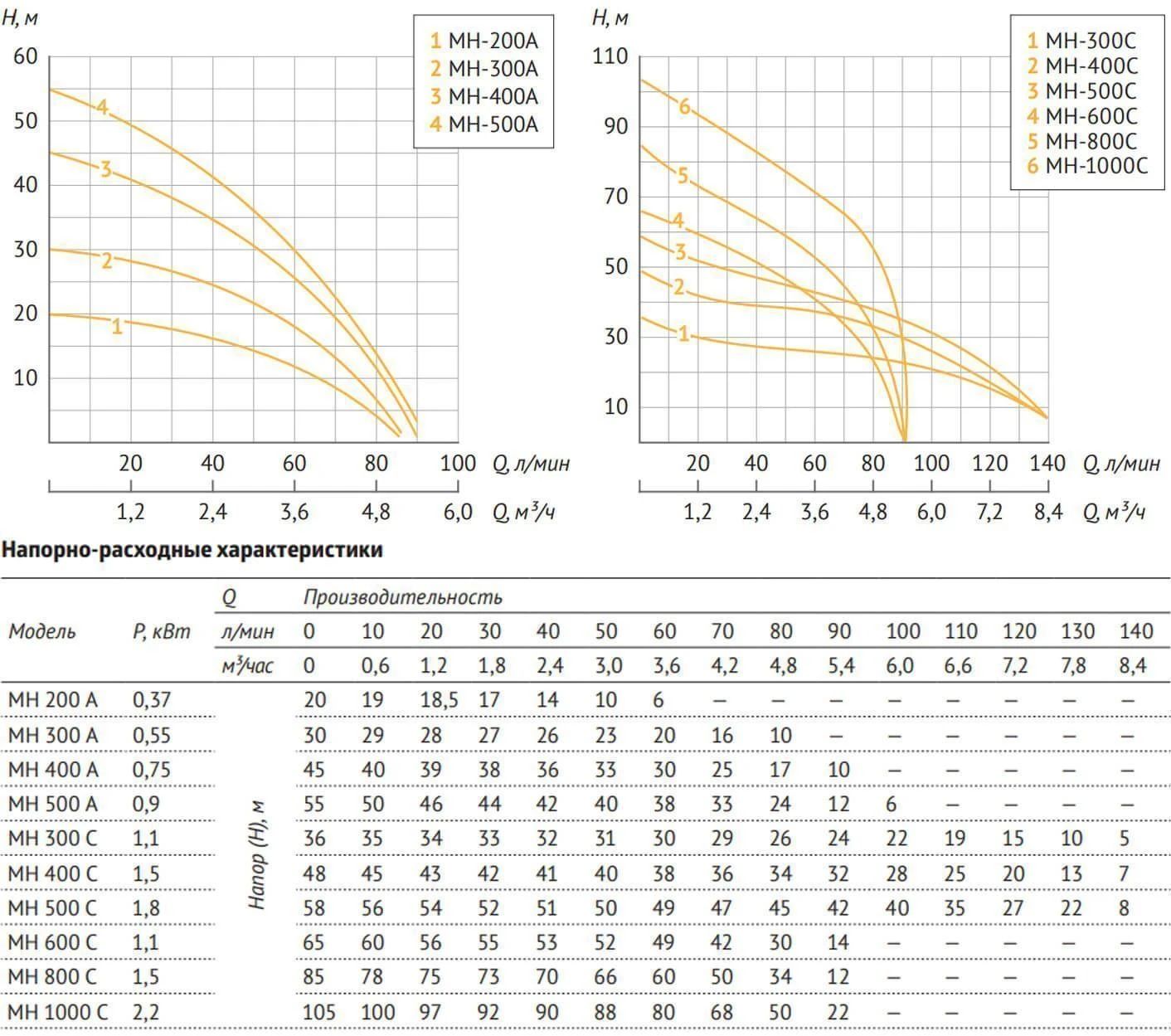 Насосы серии MH — горизонтальные многоступенчатые насосы. Насосы такого типа способны создавать и поддерживать высокие значения напора. Предназначены для перекачивания чистой воды, не содержащей абразивных и волокнистых примесей, из неглубоких скважин, колодцев, различных резервуаров, для использования в системах повышения давления, полива и орошения, для подачи воды в бассейны, фонтаны, моечное оборудование и для других хозяйственно-бытовых нужд.