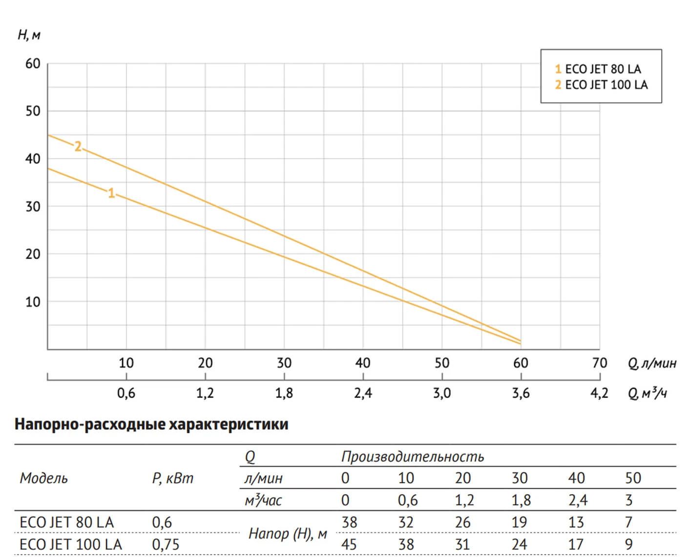 ECO JET LA - однофазный одноступенчатый центробежный поверхностный насос с удлиненным эжектором, чугунным корпусом, рабочим колесом из поликарбоната, алюминиевой обмоткой статора для подачи чистой холодной воды из скважин и колодцев (глубиной не более 8 метров), открытых водоемов, резервуаров и других источников водоснабжения.