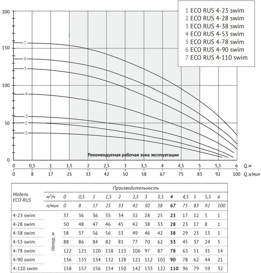 Погружные скважинные насосы серии ECO RUS swim предназначены для подачи чистой холодной воды без абразивных веществ и волокнистых включений из скважин с внутренним диаметром не менее 98 мм, глубоких колодцев и октрытых водоемов. Насосы оснащены «плавающими» рабочими колёсами, что позволяет использовать их для подачи воды с содержанием ила и песка до 200 г/м³.
