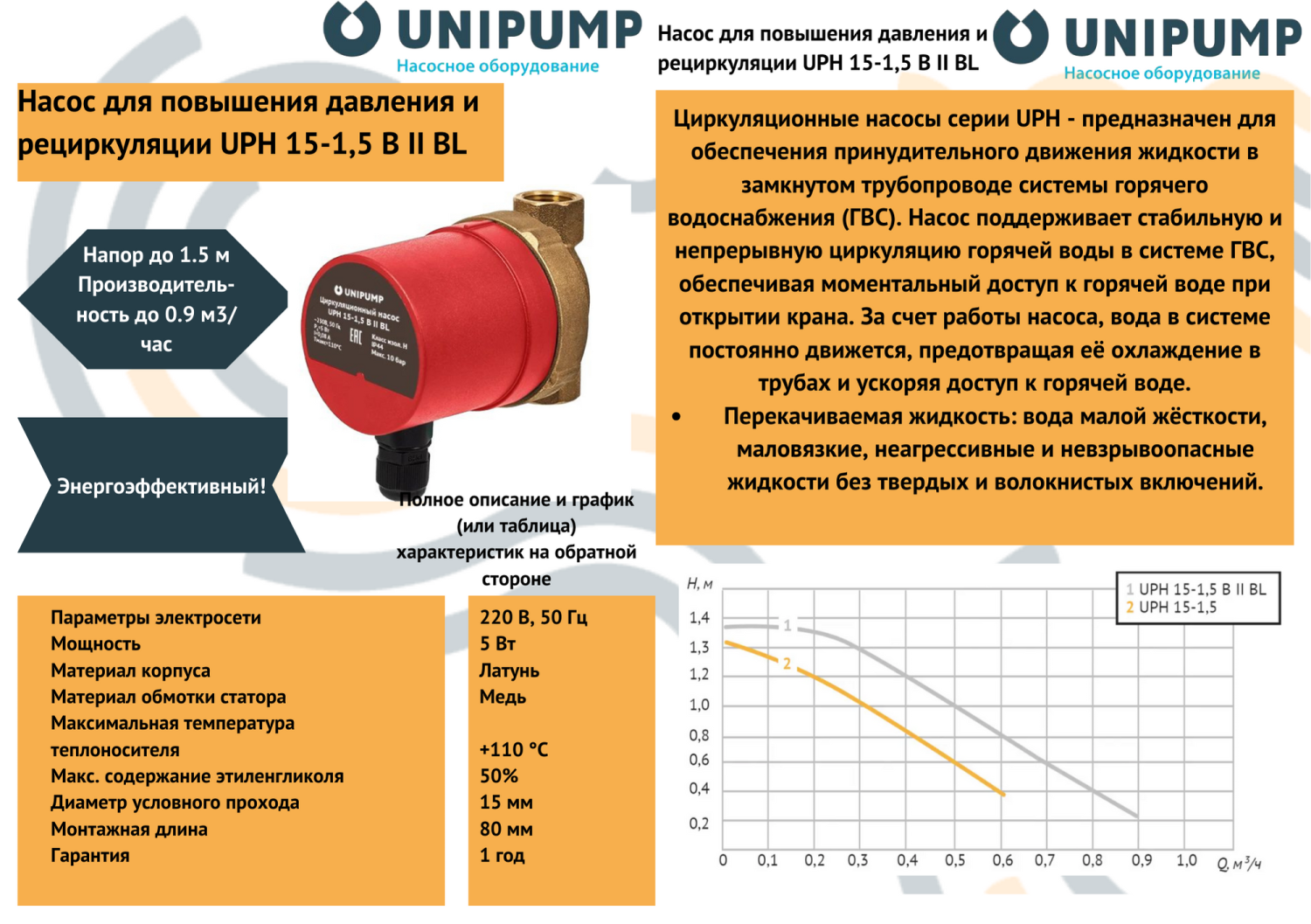 Циркуляционные насосы серии UPH - предназначен для обеспечения принудительного движения жидкости в замкнутом трубопроводе системы горячего водоснабжения (ГВС).