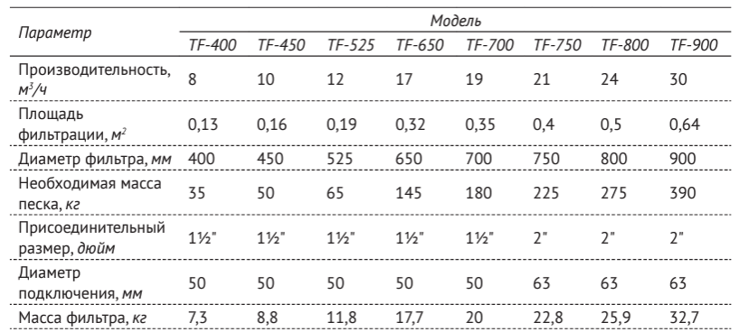 - Фильтрующий материал - кварцевый песок, фракция - 0,5…1,0 мм,