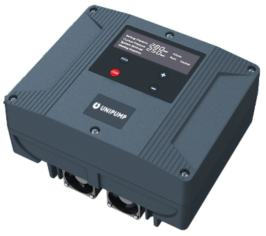 Обеспечивает защиту насоса от отсутствия воды, перегрузки по току, блокировки рабочего колеса, а также от скачков или падений напряжения. Автоматически осуществляет серию пробных пусков.