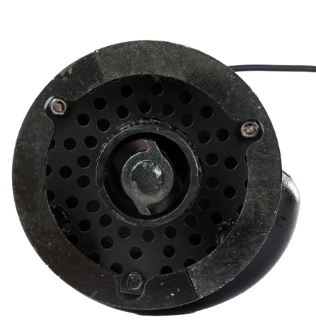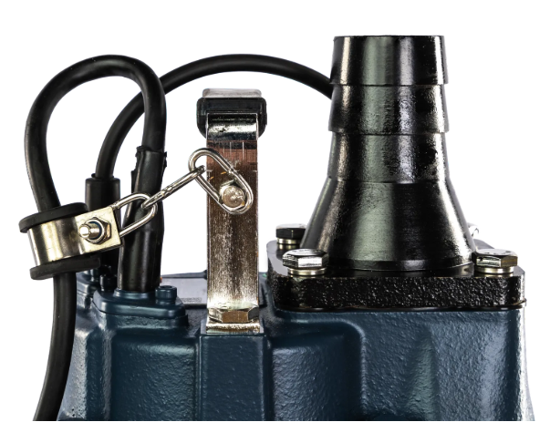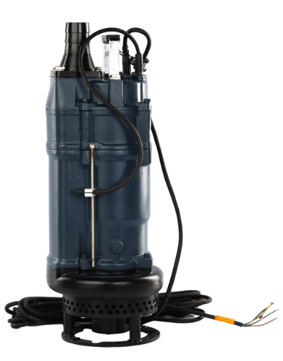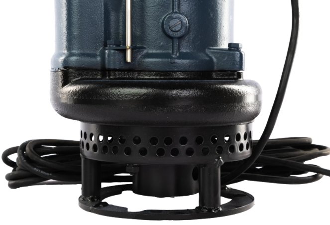 Проточная часть насоса включает в себя корпус, изготовленный из чугуна и рабочее колесо из высокохромистого сплава, закреплённое на валу ротора электродвигателя. На нижней части корпуса установлен сетчатый фильтр, который предотвращает попадание крупных частиц в насос. На верхней части насоса расположен напорный патрубок, изготовленный из чугуна, к которому могут подключаться как гибкие шланги (рукава), так и жесткие трубопроводы, в зависимости от требований системы и условий эксплуатации.